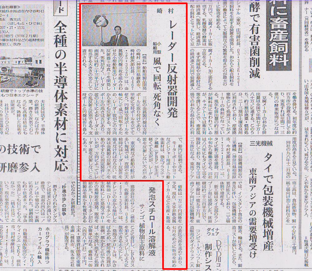1997年 「レーダー反射器」日経産業新聞に掲載